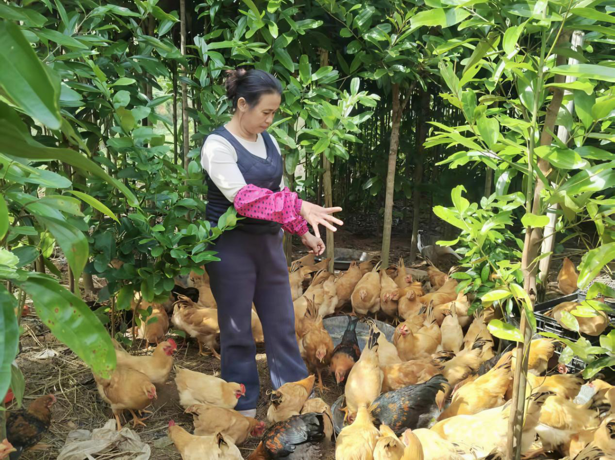 深秋時(shí)節(jié),平南縣六陳鎮(zhèn)的肉桂林間生機(jī)盎然。覃肖梅正穿梭在郁郁蔥蔥的桂樹之間,給散養(yǎng)的土雞投喂飼料,雞群在林間啄食草籽、昆蟲,清脆的雞鳴與桂樹的清香交織成一幅鮮活的庫區(qū)致富圖景。六陳鎮(zhèn)作為水庫移民聚居地,長(zhǎng)期以來,移民群眾多依賴傳統(tǒng)種植維持生計(jì),產(chǎn)業(yè)結(jié)構(gòu)單一、抗風(fēng)險(xiǎn)能力弱。 為激活庫區(qū)產(chǎn)業(yè)活力,助力移民群眾探索“林下種養(yǎng)”致富新路徑,廣西玉林農(nóng)業(yè)學(xué)校積極響應(yīng)自治區(qū)生態(tài)移民發(fā)展中心號(hào)召,聯(lián)合貴港市生態(tài)移民發(fā)展中心、平南縣生態(tài)移民發(fā)展中心,啟動(dòng)第三期水庫移民特色養(yǎng)殖技術(shù)培訓(xùn)班,以生態(tài)家禽養(yǎng)殖為核心,配套品牌打造、產(chǎn)銷對(duì)接等全鏈條指導(dǎo),50名移民群眾踴躍參訓(xùn),覃肖梅憑借敢闖敢試的勁頭,成為培訓(xùn)班中脫穎而出的創(chuàng)業(yè)典型。 林下試養(yǎng)遇困,傳統(tǒng)模式難突圍 覃肖梅是六陳鎮(zhèn)水庫移民村的普通村民,“肉桂樹底下的空地閑著可惜,要是能利用起來做點(diǎn)什么,日子肯定能更好。”抱著這樣的想法,覃肖梅萌生了在肉桂林下養(yǎng)殖土雞的念頭——桂樹能遮陰避雨,林間的草籽、昆蟲可作天然飼料,土雞糞便又能成為桂樹的有機(jī)肥,形成生態(tài)循環(huán)。 說干就干,覃肖梅拿出多年積蓄,引進(jìn)500只優(yōu)質(zhì)土雞苗,在自家的肉桂林里搭建了簡(jiǎn)易棚舍,開啟了“肉桂林養(yǎng)雞”的嘗試?蓻]有養(yǎng)殖經(jīng)驗(yàn)的她,很快就遭遇了難題:土雞在林間覓食雜亂,部分雞只因營(yíng)養(yǎng)不均衡生長(zhǎng)緩慢;桂樹林間濕度較大,棚舍通風(fēng)不暢,雞群容易出現(xiàn)呼吸道疾;缺乏科學(xué)的防疫知識(shí),不知道該何時(shí)接種疫苗、如何防控疫;更讓她頭疼的是,不懂科學(xué)管理,雞群出欄時(shí)間參差不齊,加上沒有固定銷售渠道,產(chǎn)品銷路成了大問題。 “本想靠‘肉桂林養(yǎng)雞’的特色闖出一條路,沒想到因?yàn)椴欢夹g(shù),越養(yǎng)越迷茫。”正當(dāng)覃肖梅一籌莫展時(shí),村支書帶來了廣西玉林農(nóng)業(yè)學(xué)校要在鎮(zhèn)上舉辦特色養(yǎng)殖技術(shù)培訓(xùn)班的消息,不僅免費(fèi)授課,還會(huì)組織專家上門指導(dǎo)。抱著學(xué)習(xí)技術(shù)的迫切心情,覃肖梅第一時(shí)間報(bào)了名。 多維賦能破局,科學(xué)養(yǎng)殖煥生機(jī) 廣西玉林農(nóng)業(yè)學(xué)校立足六陳鎮(zhèn)的地域特色和移民養(yǎng)殖需求,創(chuàng)新打造“技術(shù)賦能+特色挖掘+產(chǎn)銷對(duì)接”三位一體培訓(xùn)模式,組建了由畜牧專家、資深養(yǎng)殖技術(shù)員、電商運(yùn)營(yíng)能手組成的“智囊團(tuán)”,讓培訓(xùn)既有理論高度,更具實(shí)踐價(jià)值。