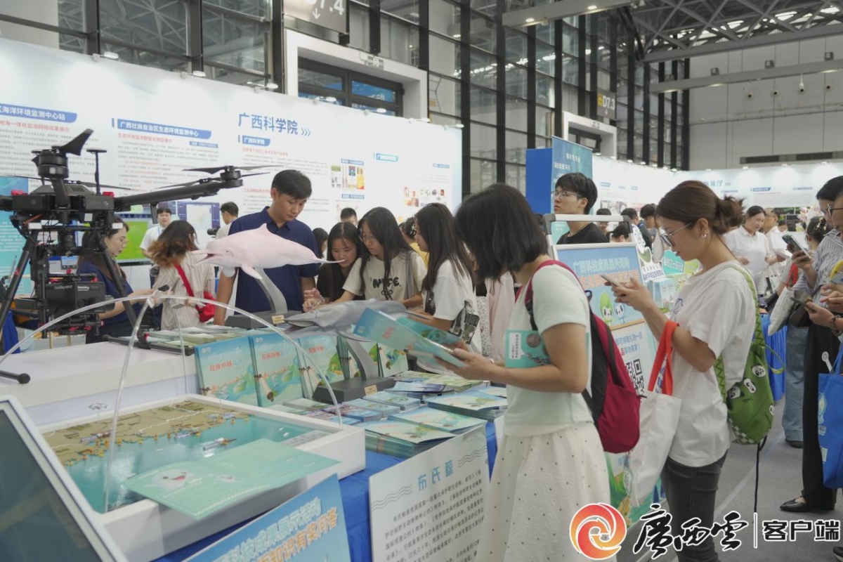 深入漁港開展布氏鯨保護(hù)知識宣傳。廣西海洋站供圖 “我們通過向景區(qū)的游客、民宿商家、漁民等人群分發(fā)觀鯨護(hù)鯨指南宣傳折頁,宣傳普及布氏鯨保護(hù)知識,分眾化引導(dǎo),讓公眾觀鯨與護(hù)鯨深度綁定,推動海洋生態(tài)保護(hù)理念從 ‘了解’走向 ‘踐行’,共同守護(hù)布氏鯨賴以生存的藍(lán)色家園!睆V西海洋站生態(tài)研究室主任、高級工程師龐碧劍說道。 此外,廣西海洋站還聯(lián)合北海市旅游文體局、北海市圖書館、大道美術(shù)等多家單位舉辦2025年悅讀護(hù)苗科普行動系列活動——小鯨靈·海洋創(chuàng)想家書畫展,為公眾打造了一場集知識性、趣味性與藝術(shù)性于一體的海洋生態(tài)保護(hù)科普盛宴。同時還組織科普工作隊(duì)員參加中國科學(xué)院百項(xiàng)重大科技成果入桂轉(zhuǎn)化活動,展示布氏鯨、中華白海豚等海洋生物多樣性和海洋生態(tài)環(huán)境保護(hù)監(jiān)測與成果,向公眾普及海洋生態(tài)環(huán)境保護(hù)知識。