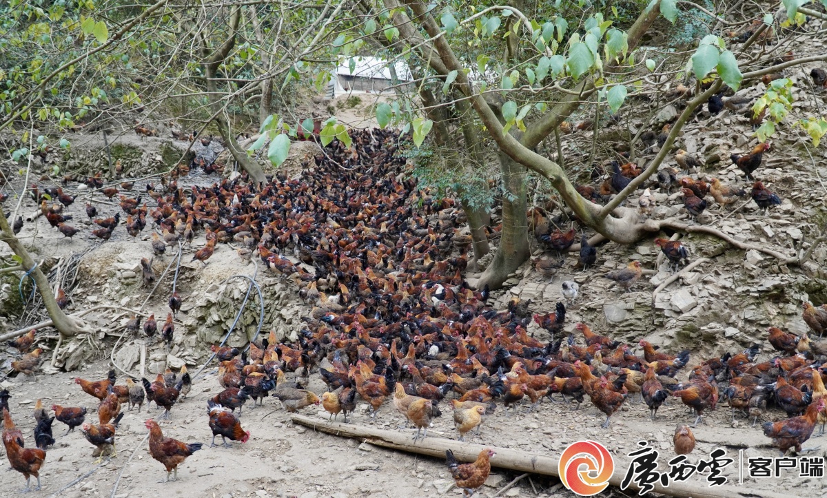 12月16日,柳州市三江侗族自治縣斗江鎮(zhèn)白言村的山林間生機盎然。上萬只土雞在杉樹林與竹林間穿梭覓食,“雞司令”余后奎一撒飼料,群雞便聞聲聚攏,場面熱鬧非凡。