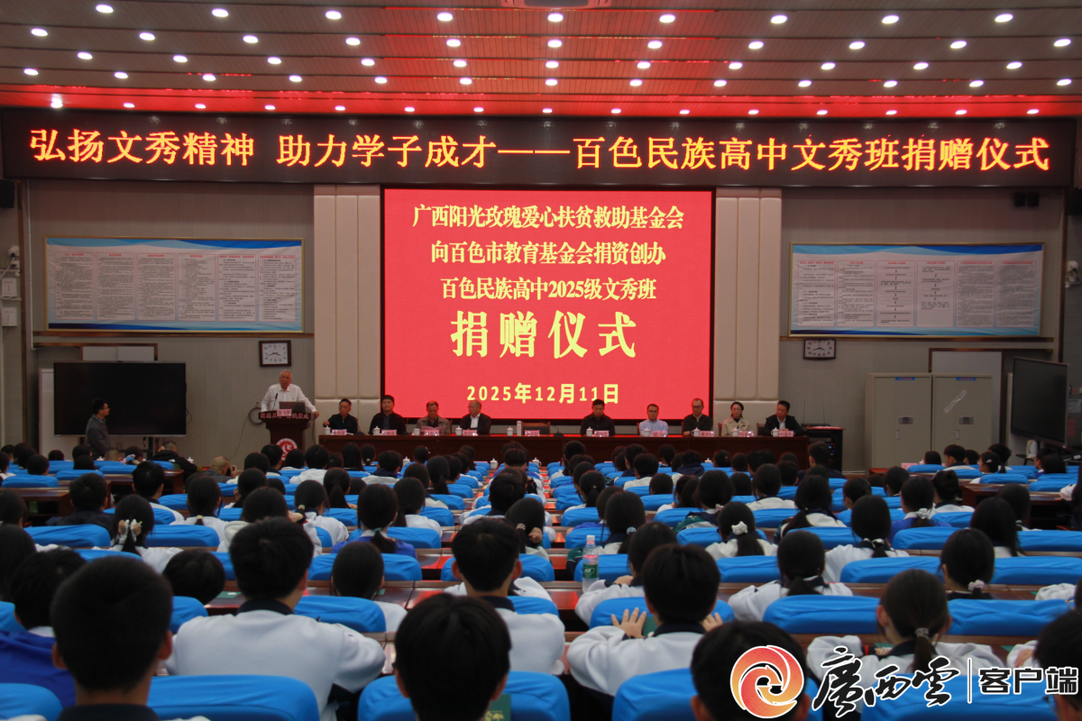 12月11日至14日,百色市樂業(yè)高中、百色民族高級中學(xué)、百色市勵志學(xué)校獲贈辦學(xué)資金114萬元。其中,廣西陽光玫瑰愛心扶貧救助基金會向百色民族高中捐贈45萬元,設(shè)立2025級“文秀班”;廣州港集團(tuán)向樂業(yè)高中捐資45萬元、創(chuàng)辦“文秀班”并舉行開班典禮;百色市教育基金會向百色市勵志學(xué)校捐贈24萬元,用于改善學(xué)校辦學(xué)條件,為特殊群體少年點(diǎn)亮希望。