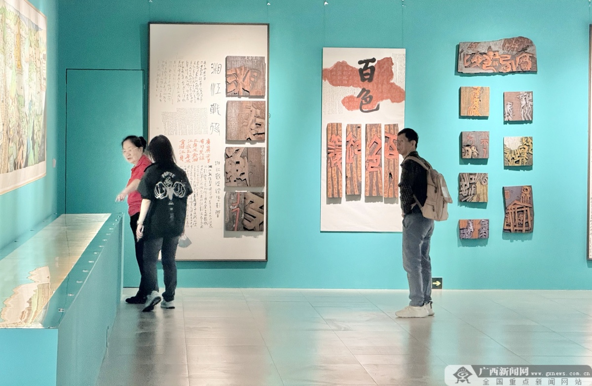 展覽現(xiàn)場(chǎng)。主辦方供圖 本次展覽共展出作品67件(組),薈萃入展第十四屆中國(guó)藝術(shù)節(jié)全國(guó)優(yōu)秀美術(shù)、書法篆刻、攝影作品展覽的精品力作,以及廣西藝術(shù)基金2024—2025年度美術(shù)創(chuàng)作資助項(xiàng)目的豐碩成果,涵蓋中國(guó)畫、油畫、版畫、雕塑、水彩(粉)畫、漆畫、書法、篆刻、藝術(shù)攝影等美術(shù)創(chuàng)作作品,以及雕刻、陶藝、漆藝、編織編結(jié)、刺繡、金工等工藝美術(shù)作品。這些成果既是對(duì)廣西藝術(shù)基金扶持成效的集中呈現(xiàn),也是對(duì)廣西美術(shù)界創(chuàng)作實(shí)力的一次全面檢閱。