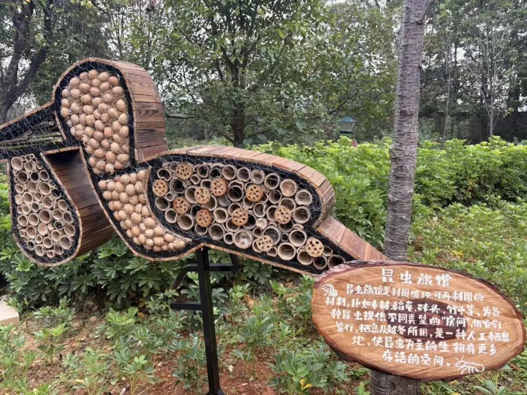 記者 劉雙生 攝 除了大型鳥窩,公園還在淺水區(qū)布置了由枯枝制成的“自然座椅”,供長途跋涉的候鳥停歇。樹枝上懸掛了30多個人工鳥巢和喂食器,定期補充食物,確保留鳥和越冬鳥類“住得安心、吃得放心”。此外,兩座造型可愛、充滿童趣的“昆蟲旅館”也格外引人注目。