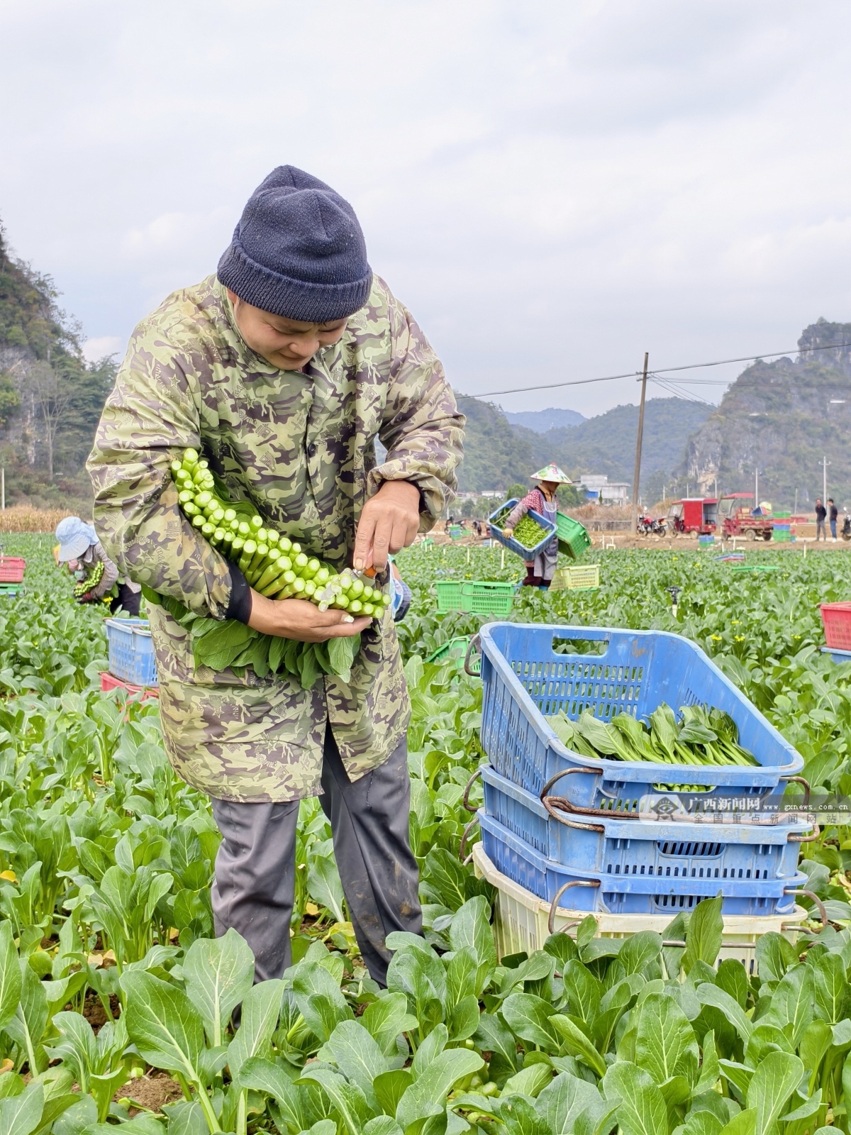 馬山縣永州鎮(zhèn)勝利村菜根譜蔬菜基地采用“收播同步、分區(qū)輪作”模式,保障每日供往粵港澳大灣區(qū)的蔬菜供應(yīng)。圖為剛播種區(qū)域,噴灌系統(tǒng)正均勻灑水。謝青夏 攝 在這一變革進(jìn)程中,自治區(qū)農(nóng)業(yè)農(nóng)村廳強化統(tǒng)籌,將“智慧農(nóng)業(yè)”納入“頭雁”培育必修課,通過政策引導(dǎo)、資源整合與平臺搭建,系統(tǒng)賦能鄉(xiāng)村產(chǎn)業(yè)帶頭人。在院士智慧與前沿科技“雙輪”驅(qū)動下,全區(qū)2800余名“頭雁”學(xué)員領(lǐng)飛振翅,以新質(zhì)生產(chǎn)力推動農(nóng)業(yè)轉(zhuǎn)型升級,帶領(lǐng)萬千農(nóng)戶向“農(nóng)業(yè)強、農(nóng)村美、農(nóng)民富”的目標(biāo),一路向“新”而行。 智能化調(diào)度:田野里的“無人”交響曲 “李總,10萬公斤大肉芥菜下午準(zhǔn)時到貨!”接到桂平酸菜加工商的確認(rèn)電話,貴港智慧農(nóng)場負(fù)責(zé)人李鴻才臉上露出了篤定的笑容。 電話這頭,170畝智慧農(nóng)場正上演著高效“接力賽”:東側(cè)剛收割完的稻茬整齊如琴鍵;西側(cè)的大肉芥菜采收正忙;不遠(yuǎn)處,無人駕駛的旋耕機與起壟覆膜機同步作業(yè),新一茬菜秧精準(zhǔn)入土。“邊收邊種”,無縫銜接——是“稻—菜”智慧輪作模式的生動體現(xiàn)。通過智能化系統(tǒng)調(diào)度,蔬菜得以在品質(zhì)最佳、價格最優(yōu)的時節(jié)上市,這正是智慧農(nóng)業(yè)賦予傳統(tǒng)生產(chǎn)的全新競爭力。 秋收后搶種大肉芥菜,一個冬季可完成三茬輪作,畝產(chǎn)累計約7500公斤,畝均增收近3000元,讓“淡季”變“旺季”,讓“閑田”變“錢田”。 這一成效背后,是中國工程院院士羅錫文團隊的技術(shù)支撐!案戕r(nóng)機,每到一處都要脫鞋下田踩一踩,感受泥巴的深度和松軟度。”羅錫文院士這句話,讓李鴻才銘記于心。2024年,在自治區(qū)農(nóng)業(yè)農(nóng)村廳等部門支持下,李鴻才引進(jìn)羅錫文院士團隊的無人農(nóng)場技術(shù)與裝備,采用“合作社+高校+家庭農(nóng)場”模式,建成廣西首個智慧農(nóng)場示范基地。 在這里,無人駕駛拖拉機、插秧機、收獲機等裝備通過智能平臺協(xié)同作業(yè),實現(xiàn)水稻從耕、種、管到收全程機械化與智能化。“無人作業(yè)降低70%以上人力成本,關(guān)鍵是解決了‘未來誰來種地、怎樣種好地’的問題!崩铠櫜耪f。 如今,農(nóng)場常年帶動周邊20—70名村民靈活就業(yè),每人日均收入超百元。政府搭橋、高校賦能、農(nóng)場落地的“三維支撐”模式,正成為可復(fù)制、可推廣的農(nóng)業(yè)現(xiàn)代化樣板。 生態(tài)循環(huán):重建農(nóng)業(yè)自然法則 “這菜心又脆又甜。”在南寧市馬山縣永州鎮(zhèn)勝利村的蔬菜基地,兩位連鎖超市采購商嘗后連連稱贊。這片讓行家驚喜的菜地,屬于廣西“頭雁”學(xué)員徐秀能。清甜背后,是他多年扎根喀斯特地區(qū)摸索出的生態(tài)農(nóng)業(yè)模式。