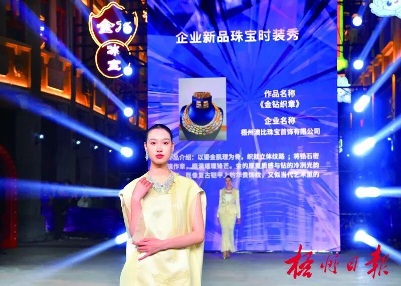 12月18日晚,在梧州騎樓城舉行的“梧有瑰寶 攜手時尚”梧州寶石時尚秀中,模特正在展示寶石飾品。 記者 李鴻榮 攝 科技賦能不僅體現(xiàn)在設計環(huán)節(jié),更深入生產(chǎn)制造全鏈條。AI展示館內(nèi),高硬材質(zhì)激光切割機、AI自動鑲嵌機等設備,直觀展現(xiàn)了產(chǎn)業(yè)升級的最新成果; …… 從核心技術發(fā)布到標準體系構建,從AI設計創(chuàng)新到場景化應用,一系列“科技+”舉措精準發(fā)力,推動梧州寶石產(chǎn)業(yè)告別傳統(tǒng)加工模式,邁向智能化、標準化、高端化發(fā)展新階段。 “隨著AI智能化發(fā)展,數(shù)字化設計迅速崛起,本屆梧州寶石節(jié)讓我看到,梧州市對寶石產(chǎn)業(yè)的轉(zhuǎn)型升級給予了高度重視與大力支持!痹趨⑴c各項活動后,第三屆義烏市飾品配件行業(yè)協(xié)會會長沈錦飛深切地感受到,如今的梧州寶石產(chǎn)業(yè),無論是加工戶還是經(jīng)營戶,大家對產(chǎn)業(yè)升級、產(chǎn)品迭代和創(chuàng)新有了更強烈的追求。 “展會+” 激活產(chǎn)業(yè)供需鏈條 本屆寶石節(jié)向全民敞開大門,更以企業(yè)為主體,創(chuàng)新采用“展會結合”模式舉辦產(chǎn)銷對接活動。 寶石節(jié)期間,珠寶首飾暨名特優(yōu)產(chǎn)品展銷會現(xiàn)場人頭攢動,市民和游客參與熱情高漲。設計新穎、價格親民的珠寶首飾與名特優(yōu)產(chǎn)品受到熱捧,實現(xiàn)銷售額860萬元,讓市民和游客輕松實現(xiàn)“寶石購買自由”。