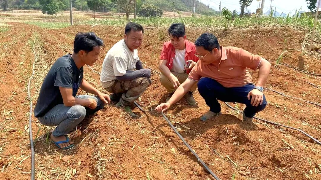 黃庭(右二)與技術(shù)員、種植戶在研究水肥一體化建設(shè)。 在此基礎(chǔ)上,龍州縣金子水果協(xié)會(huì)持續(xù)加強(qiáng)與廣西南亞熱帶農(nóng)業(yè)科學(xué)研究所甘蔗科研團(tuán)隊(duì)、國家第一批產(chǎn)業(yè)顧問組(糖料蔗產(chǎn)業(yè))合作,不斷完善、提升該系統(tǒng)性能,于今年3月開始推廣性價(jià)比更優(yōu)的配方。 “平南村群眾參與熱情高漲,自發(fā)采購設(shè)備300多套,推動(dòng)甘蔗水肥一體化管理技術(shù)覆蓋率提升至50%,村里5000余畝甘蔗實(shí)現(xiàn)精準(zhǔn)灌溉,新植甘蔗出苗率在80%到90%之間!秉S庭欣喜地說。 截至目前,包括塘巧村黃庭家庭農(nóng)場(chǎng)基地在內(nèi),黃庭已建立三個(gè)甘蔗種植基地,總面積200畝。 這兩年來,黃庭和協(xié)會(huì)一直在忙碌著兩件事。首先是探索甘蔗種植的行距問題,包括1.2米行距、1.4米行距、2.4米行距三種模式。其次是進(jìn)行甘蔗品種種植對(duì)比試驗(yàn),目前共包括桂糖44號(hào)、桂糖55號(hào)、壯糖6號(hào)、云蔗081609、龍?zhí)?號(hào)、龍?zhí)?號(hào)、龍?zhí)?號(hào)7個(gè)品種。 “每種種植模式的優(yōu)勢(shì)和不足,我們都進(jìn)行分析、比較,為實(shí)現(xiàn)甘蔗生產(chǎn)全程機(jī)械化作充分準(zhǔn)備。”黃庭說,“同時(shí),通過不同品種種植對(duì)比試驗(yàn),為因地制宜推廣優(yōu)質(zhì)品種種植提供科學(xué)參考! 2024年3月,王勝東牽頭成立廣西新聯(lián)優(yōu)品商貿(mào)有限責(zé)任公司。黃庭加入后,充分發(fā)揮曾經(jīng)在IT行業(yè)工作的優(yōu)勢(shì),拍攝科學(xué)種蔗科普短視頻,以“山農(nóng)小黃人”這個(gè)IP為載體強(qiáng)化宣傳,形成“線上傳播+線下實(shí)踐”的立體化推廣格局。