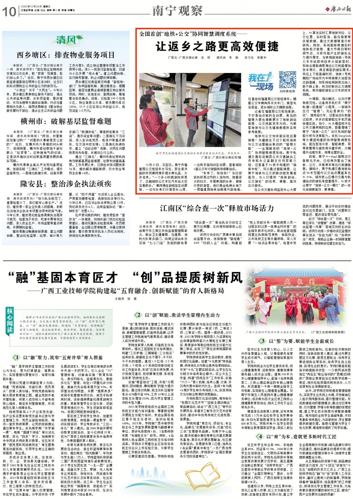 廣西日報南寧頭條|全國首創(chuàng)“地鐵+公交”協(xié)同智慧調(diào)度系統(tǒng):讓返鄉(xiāng)之路更高效便捷 |