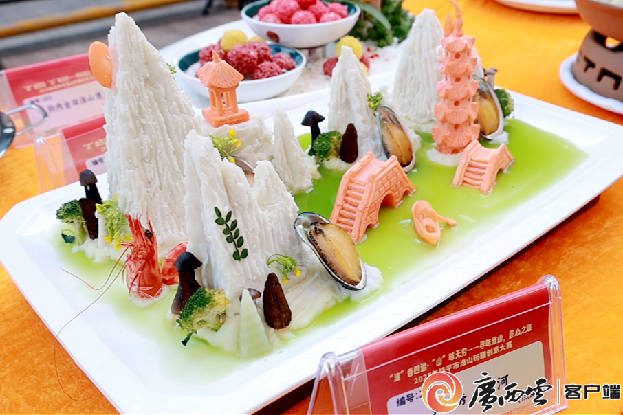 參賽藥膳作品。通訊員 韋麗榮 朱春婷 攝 評(píng)委團(tuán)秉持“公平、公正、公開(kāi)”原則,嚴(yán)格遵循桂菜特色藥膳美食評(píng)選標(biāo)準(zhǔn)現(xiàn)場(chǎng)品評(píng)打分,大賽最終評(píng)選出特金獎(jiǎng)、金獎(jiǎng)參賽藥膳作品各15道,銀獎(jiǎng)16道。 桂平市綠玫瑰中西餐廳團(tuán)隊(duì)負(fù)責(zé)人潘健說(shuō):“這次的比賽,我們綠玫瑰中西餐廳帶來(lái)了三個(gè)作品,其中《錦繡河山》獲得了特金獎(jiǎng)。這次比賽讓我們同行能夠有一個(gè)好的平臺(tái)進(jìn)行交流,共同把我們桂平的食材,特別是金田淮山,推廣得更遠(yuǎn)、更高! 參賽藥膳作品。通訊員 韋麗榮 朱春婷 攝 作為國(guó)家地理標(biāo)志農(nóng)產(chǎn)品,金田淮山堪稱“養(yǎng)生實(shí)力派”,能健脾益胃、益肺止咳、輔助控糖,是天然的“藥膳寶藏”。目前,全市金田淮山種植面積達(dá)5萬(wàn)多畝,產(chǎn)量10萬(wàn)多噸,總產(chǎn)值超15億元。 “這場(chǎng)大賽不僅是對(duì)原料品質(zhì)的最高規(guī)格檢驗(yàn),更是推動(dòng)產(chǎn)業(yè)升級(jí)的重要契機(jī),它讓我們看到淮山突破傳統(tǒng)銷(xiāo)售模式的可能,邁向高附加值、精深加工的廣闊藍(lán)海,更搭建起餐飲精英挖掘淮山潛力,把握市場(chǎng)趨勢(shì)的橋梁!惫鹌绞薪鹛镦(zhèn)黨委副書(shū)記、鎮(zhèn)長(zhǎng)劉鎮(zhèn)鴻說(shuō)。 此次大賽的舉辦,不僅為餐飲從業(yè)者搭建了交流展示的平臺(tái),更進(jìn)一步挖掘了金田淮山的藥膳價(jià)值與文化內(nèi)涵,助力“金田淮山”品牌升級(jí)。下一步,桂平市將持續(xù)以特色產(chǎn)業(yè)為抓手,通過(guò)更多多元化活動(dòng)賦能產(chǎn)業(yè)鏈條,激發(fā)產(chǎn)業(yè)活力,助力農(nóng)民增收,推動(dòng)鄉(xiāng)村振興發(fā)展。 |