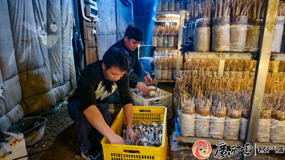 視頻拍攝:唐華 蔣麗如 剪輯:廣西云-廣西日?qǐng)?bào)記者 陳智超 2月初,室外寒風(fēng)凜冽,而賀州市鐘山縣鳳翔鎮(zhèn)唐月村豬肚菌種植基地的大棚內(nèi)卻暖意融融、水汽氤氳,一派生機(jī)勃勃的景象。一排排菌棒整齊排列,在精準(zhǔn)調(diào)控的溫濕度與持續(xù)光照共同催發(fā)下,一株株豬肚菌如鐘乳石般悄然萌發(fā)。工人們穿梭在菌架間,小心翼翼地采摘下成熟的菌菇,嫻熟地修剪掉尾端菌柄,只保留5厘米左右的嫩柄與菌傘,將最鮮美的部分分揀打包,等待發(fā)往全國(guó)各地的餐桌。