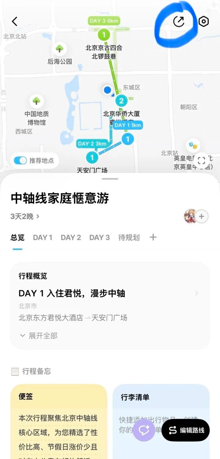 AI生成的旅游攻略 當(dāng)信息足夠復(fù)雜時,AI的價值不在于給的內(nèi)容“多”,而在于整理能力。 接入DeepSeek大模型后,程心AI聚合了文旅消費(fèi)全品類資源和用戶數(shù)據(jù),重點(diǎn)落在“能直接用”上。黃俊輝在使用程心AI時,感覺像在跟一位旅游規(guī)劃師聊天。頁面上呈現(xiàn)的是一整套連貫的信息流:景點(diǎn)、酒店都有圖文介紹,推薦并不浮夸,而是可以一鍵跳轉(zhuǎn)到同程的預(yù)訂頁面。 黃俊輝最喜歡的是程心AI生成的手繪線路圖。地圖上標(biāo)注的不只是點(diǎn)位,還有關(guān)于為何這樣走的有趣表達(dá)。 “高度分工的業(yè)務(wù)團(tuán)隊”是這五口之家對飛豬問一問的評價。多智能體驅(qū)動的架構(gòu)讓使用者進(jìn)入飛豬問一問頁面后就能看到清晰的任務(wù)導(dǎo)向——發(fā)現(xiàn)目的地、找便宜機(jī)票、規(guī)劃行程、找特色酒店。每一個入口,都對應(yīng)著一個“大家都想知道”的問題。而且,飛豬問一問的方案直接附帶報價。 而圓周旅跡成了全家的“旅游搭子”。周歡歡生成初版行程后,將鏈接甩進(jìn)微信里的家庭群,大家一起“連機(jī)”修改行程,這樣就不用擠在一個屏幕上了。而且AI還能自動在地圖上生成線路圖。不僅如此,圓周旅跡還有行李清單和行程備忘錄的功能設(shè)置。李麗在“行李清單”里勾選“老花鏡、降壓藥”;女兒用語音輸入“要吃冰糖葫蘆!”…… 不過,在黃俊輝看來,AI好不好用,不是參數(shù)能說明白的,還是要看在實際運(yùn)用中,能給人們帶來什么樣的幫助。 規(guī)劃的線路實用嗎? 對于AI規(guī)劃的線路是否適用的問題,周歡歡沒有正面回答。“這個問題的答案主觀性比較強(qiáng),我8歲的女兒和60歲的‘老母親’肯定有不同的看法! 周歡歡從手機(jī)調(diào)出一張表格給中國旅游報記者看:“這是我和愛人、我媽媽一起做的測試結(jié)果,3個人、5個AI、15條線,一共涉及33個景點(diǎn),每條線的景點(diǎn)重合度達(dá)到90%,跟旅行社推薦的差不多。但由于景點(diǎn)排列組合、取舍和出行節(jié)奏的不同,每條線路安排帶給我們的感受也會不一樣! 為什么選擇AI而不是旅行社? “單從這些線路設(shè)計來看,AI就算不能馬上替代旅行社,也會吸引走一部分人!崩铥愓J(rèn)為。 一家五口這次從福州來北京旅游的訴求看似簡單,但頗有個性——5天4晚想玩中軸線有代表性的地方,最好酒店有兒童娛樂設(shè)施,離中軸線不要太遠(yuǎn),性價比高。行程安排,老人不能太累,孩子的寒假作文里要有這次旅行的經(jīng)歷,孩子爸媽想有獨(dú)處放松的時間。