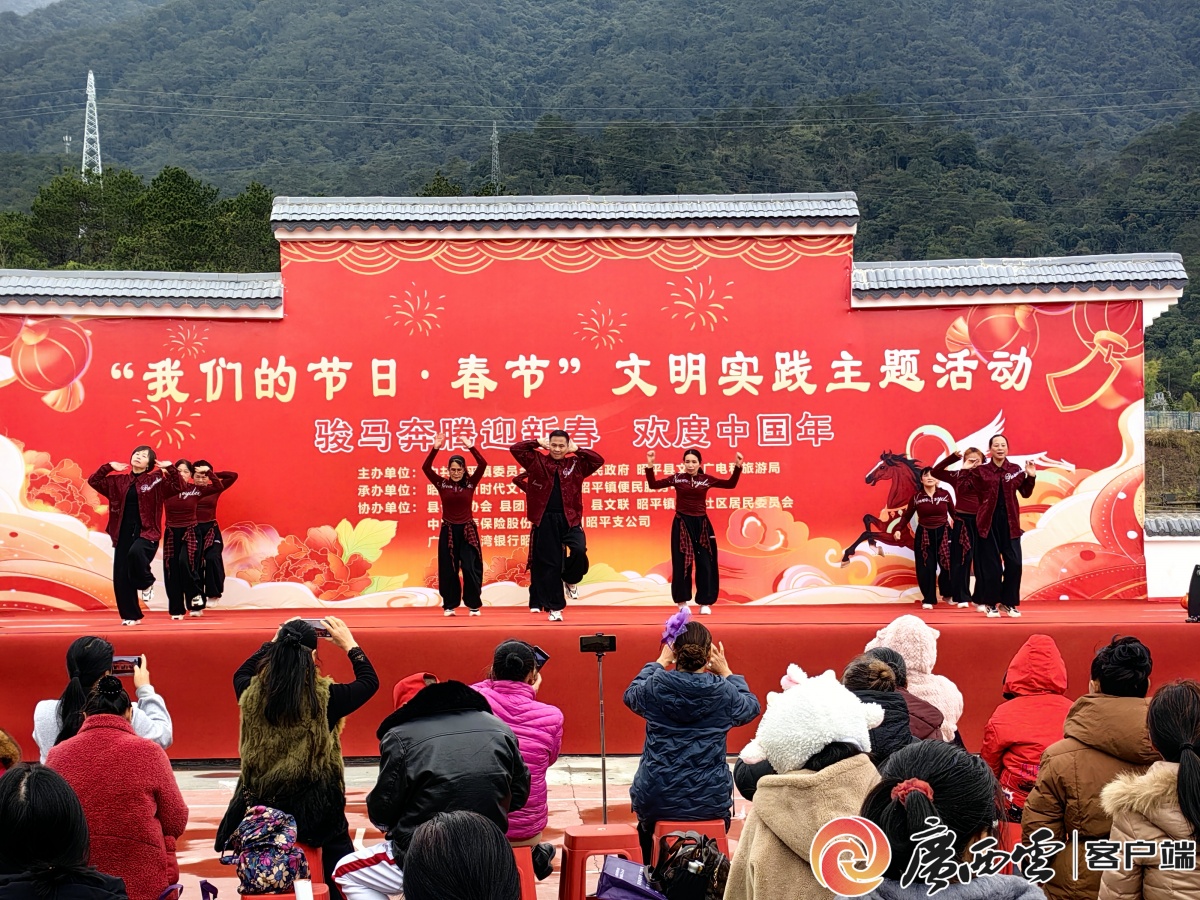 2月8日9時(shí)許,昭平縣昭平鎮(zhèn)城中社區(qū)文化廣場(chǎng)上,微微的寒風(fēng)擋不住群眾的熱情。隨著《春節(jié)序曲》悠揚(yáng)響起,“我們的節(jié)日·春節(jié)”新時(shí)代文明實(shí)踐主題活動(dòng)拉開帷幕。臺(tái)上歌舞翩躚,臺(tái)下笑語盈盈,一場(chǎng)屬于老百姓自己的“村晚”,在濃濃的年味中火熱開場(chǎng)。