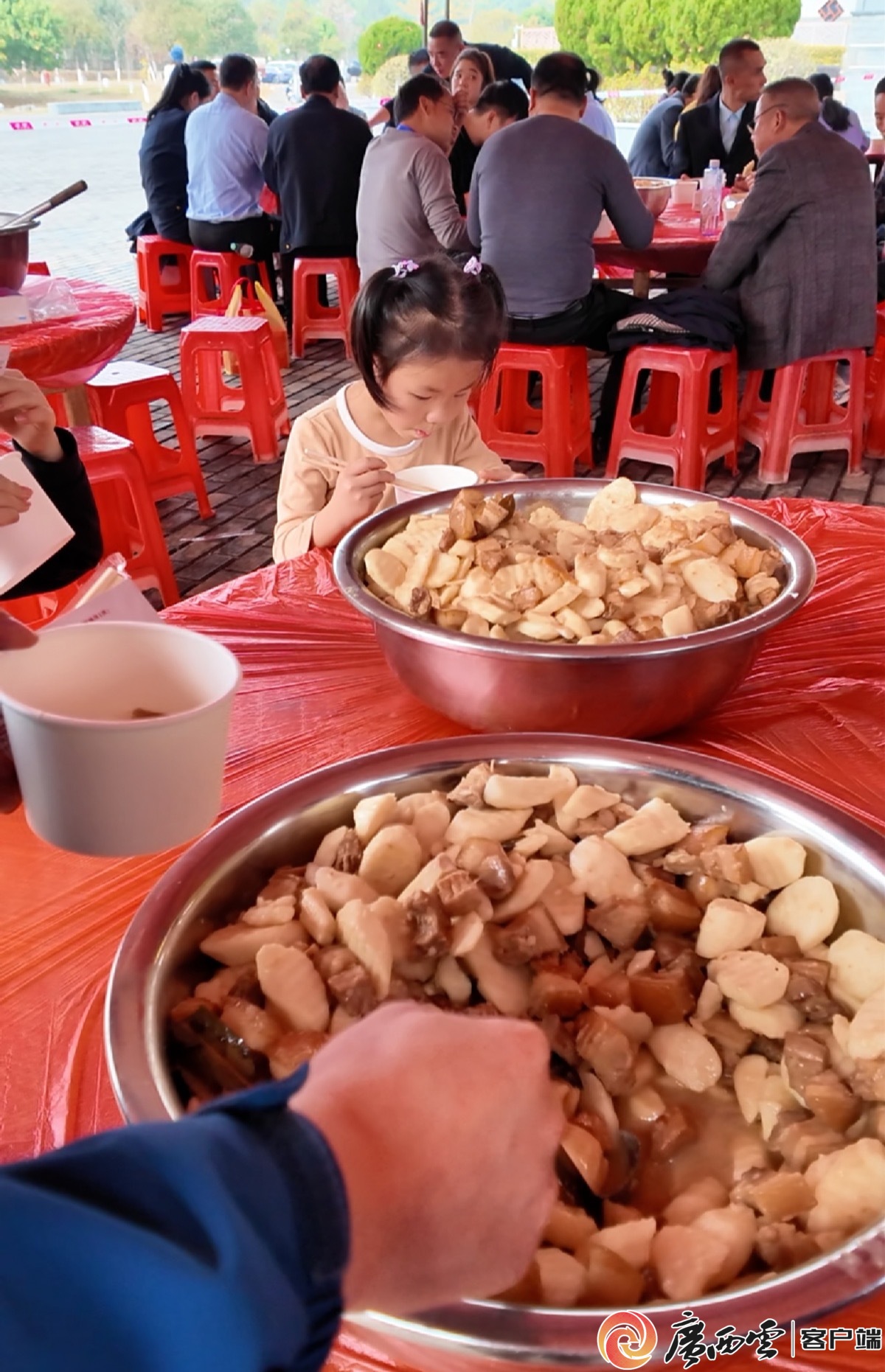 回到主會場,千人共品淮山香豬區(qū)大鐵鍋咕嘟冒泡;瓷骄d密,淮山豬肉緊實(shí)!跋愣荒!”游客頻頻添碗。