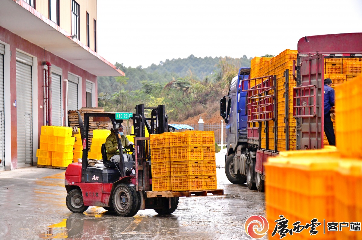 工人卸貨。 2月11日,在金秀工業(yè)園區(qū)的廣西1828大健康產(chǎn)業(yè)園內(nèi),大貨車載著新鮮采摘的砂糖橘停在工廠外,工人們正有條不紊地卸貨,這些清晨從瑤山果園采摘的砂糖橘,將在4-8小時內(nèi)完成清洗、冷榨、灌裝全流程,以“鎖鮮果汁”的形態(tài)銷往全國——這是廣西1828大健康產(chǎn)業(yè)園從果園到果汁的完整生產(chǎn)流程。