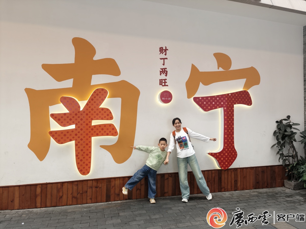 “三街兩巷”游人如織。覃海明 攝 “過年走一走金獅巷銀獅巷,寓意生活有金有銀,這是南寧人的傳統(tǒng)習(xí)俗,我們一早就過來行大運(yùn)!笔忻窭钆啃χ鴮τ浾哒f。金獅巷、銀獅巷人頭攢動,舞龍舞獅的拜年送福隊(duì)伍身著傳統(tǒng)服飾穿行,拱手致禮、福語聲聲。中華大戲院廣場前,民俗展演熱鬧登場,市民與游客駐足圍觀,喝采聲與鼓掌聲陣陣。街區(qū)處處可見“馬踏飛花”“龍馬精神”主題裝飾,紅底金紋的馬年福帖、吉祥掛件,將“馬到成功、奔騰向前”的祝福融入每一處角落。 一面寫有“南寧”二字的白墻上,“”與“丁”用紅色突出標(biāo)示,寓意“財(cái)丁兩旺”,引來了人們一批批上前拍照打卡!拔覀円患椅蹇谌说谝淮蔚侥蠈庍^春節(jié),古城的民俗熱鬧又有特色,騎樓老巷、傳統(tǒng)美食,都能感受到南寧的城市風(fēng)情與韻味!眮碜院颖钡挠慰蛷堈f。