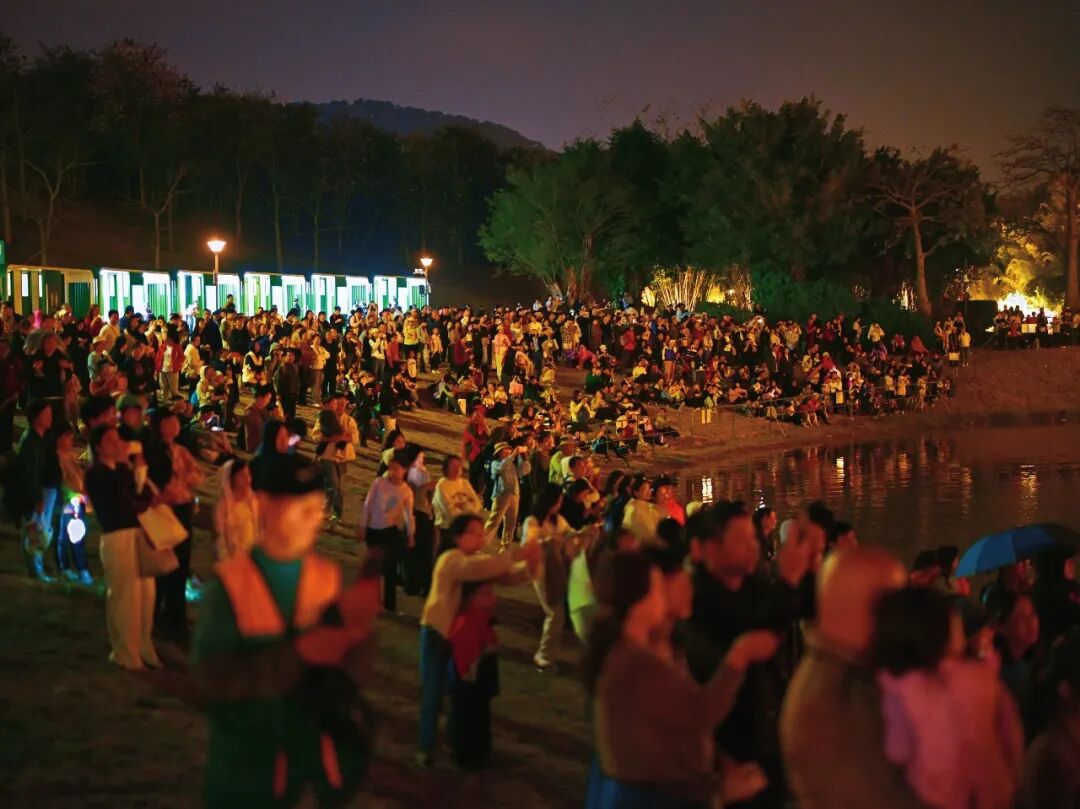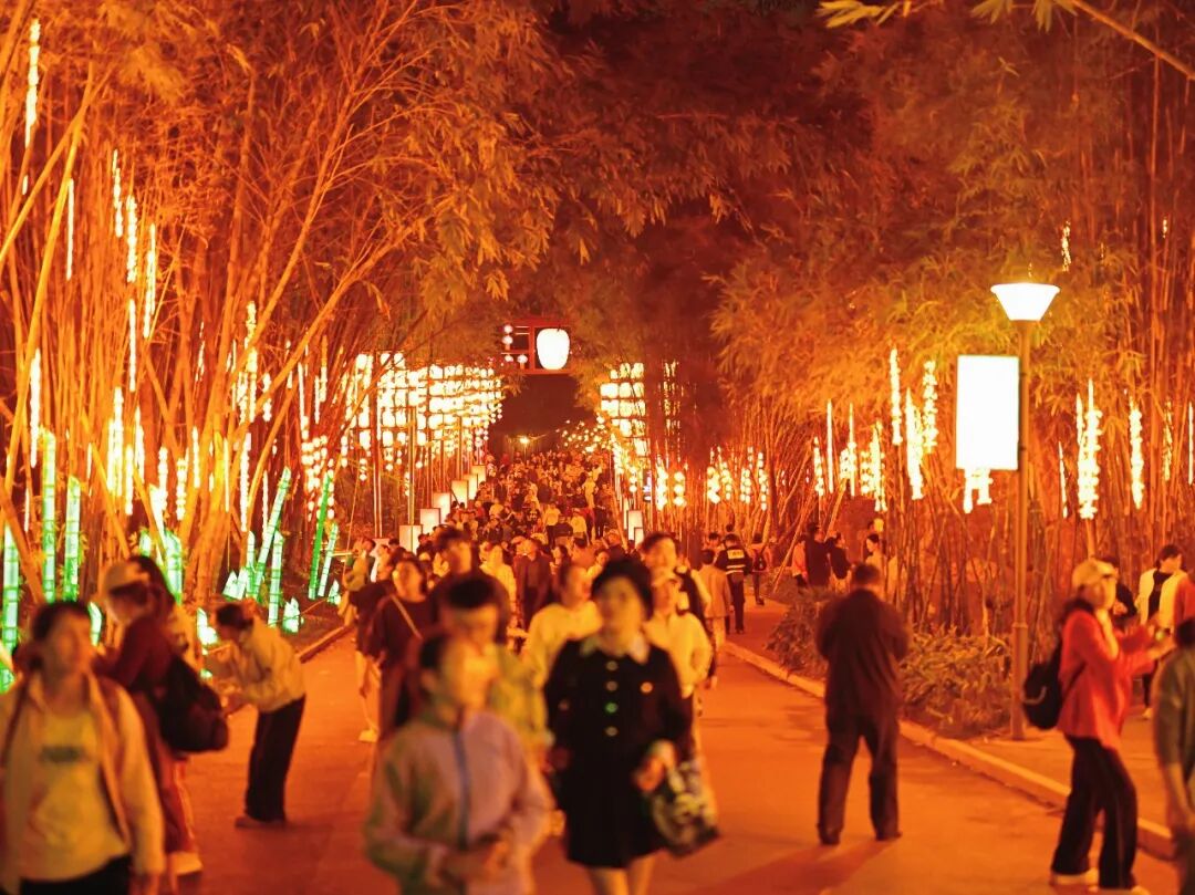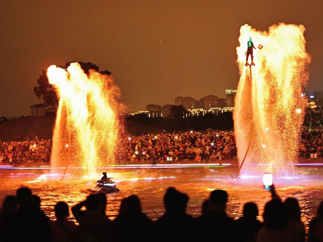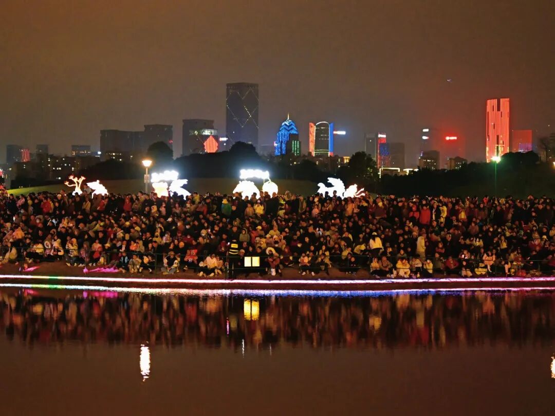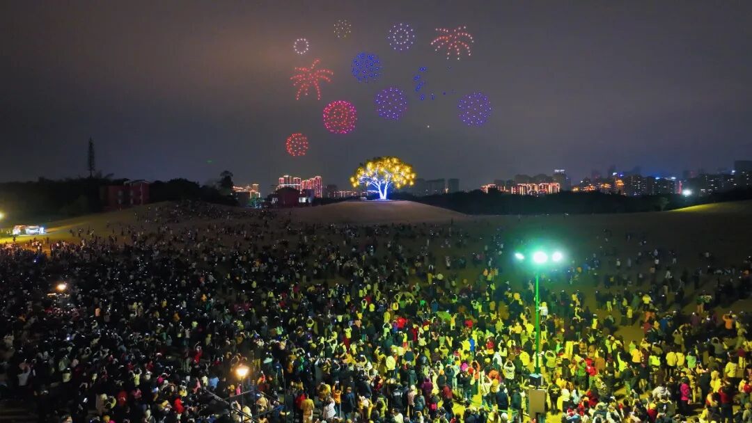 當夜幕降臨,青秀山瞬間切換至最璀璨的模式。占地約1430畝的“壯美廣西·燈耀南寧”新春燈會點亮夜空,超70組大型燈組將東區(qū)化為夢幻國度。象征前程似錦的“光馳八駿”水面燈組、高達15米的震撼恐龍場景、華美絢麗的“雙鳳和鳴”、充滿童趣的“夢幻城堡”,共同構筑了一條流光溢彩的奇幻之路。 與此同時,音樂大草坪上空,上千架無人機編隊表演,以天為幕,繪出駿馬等吉祥圖案;國家級非遺“打鐵花”如星辰墜落,與水上飛天舞獅、火藝秀交相輝映,上演火藝奇觀;智能機器人、機器狗的趣味巡游,更讓游客零距離感受到科技的魅力。傳統(tǒng)與現(xiàn)代在此完美交融,將節(jié)日狂歡推向最高潮。 全新開放的東區(qū)游樂場是青秀山送給孩子的第一份新年禮物。彩虹滑道、時空跳躍、火鳳凰等游樂項目,讓孩子們開懷大笑,興奮不已。家長們在一旁陪伴嬉戲或駐足記錄,定格下一幀幀溫馨的親子時光。
