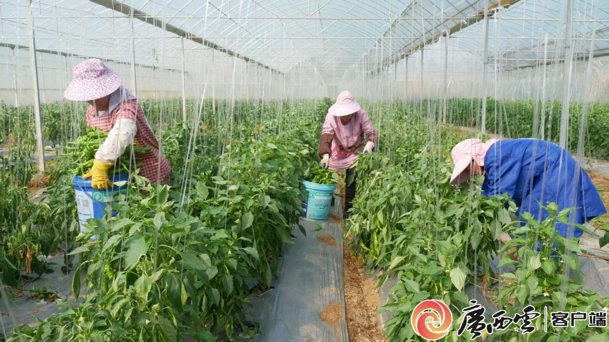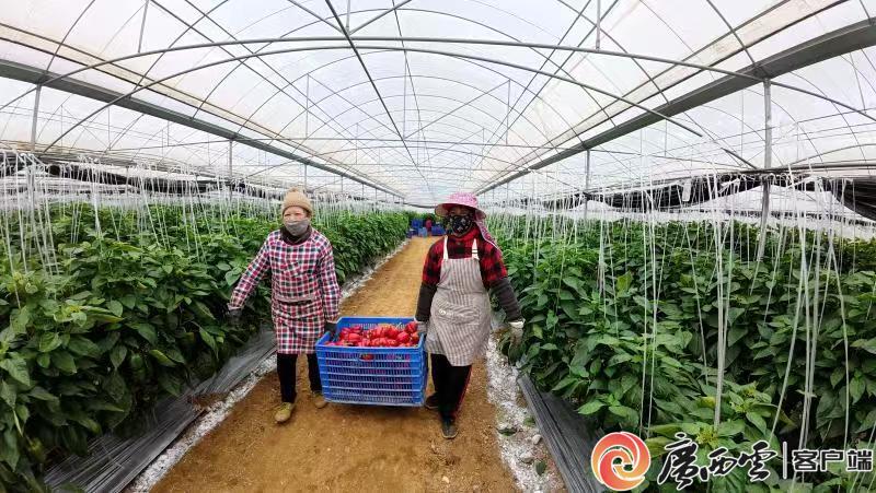 工人忙著收辣椒。 產(chǎn)業(yè)發(fā)展的最終落腳點(diǎn)是促農(nóng)增收。平桂區(qū)創(chuàng)新推行股份合作、土地租金、務(wù)工薪金等“十大聯(lián)帶”模式,走出一條以“菜”聯(lián)農(nóng)帶農(nóng)、因“菜”生財(cái)致富的示范路徑。