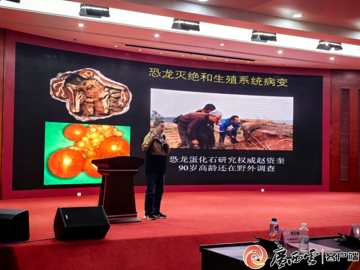 科普活動現(xiàn)場。廣西云-廣西日報記者 羅婧 攝 “關(guān)于恐龍滅絕的原因,目前學(xué)界主要有這幾種觀點……”“其實我們常見的雞鴨鵝等家禽,都是由小型恐龍演化而來,所以你吃下的雞蛋,某種意義上也是‘恐龍蛋’……”科普講座上,徐星一邊娓娓道來,一邊展示相關(guān)圖片。臺下的小觀眾們聽得目不轉(zhuǎn)睛,踴躍回答他提出的問題,現(xiàn)場氣氛熱烈。 據(jù)悉,徐星是中國科學(xué)院院士、中國科學(xué)院古脊椎動物與古人類研究所所長,也是目前世界上發(fā)現(xiàn)并命名恐龍種類最多的科學(xué)家。他還曾撰寫小學(xué)《語文》課文《飛向藍天的恐龍》,被孩子們親切地稱為“恐龍院士”。今年春節(jié),許多人回家團圓,徐星卻選擇來到南寧,在科普講臺上與孩子們過大年。