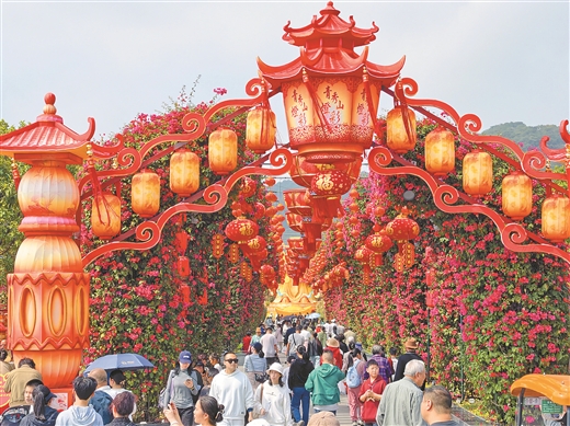 2月16日,市民和游客在南寧青秀山風(fēng)景區(qū)觀賞花燈。春節(jié)假期,該景區(qū)舉辦新春燈會,營造濃厚節(jié)日氛圍。喻湘泉 攝 南寧青秀山風(fēng)景區(qū)圍繞“壯美廣西·燈耀南寧”主題,打造了集觀燈、賞花、演藝、市集、研學(xué)于一體,晝夜聯(lián)動、動靜結(jié)合的新春體驗,春節(jié)氛圍濃厚。青秀山景區(qū)大年初一游客量創(chuàng)歷史新高,達(dá)23.42萬人次,景區(qū)秩序井然,游客體驗良好。北海海絲首港·合浦始發(fā)港景區(qū)推出“海絲首港·2026新春奇遇記”主題活動,巧妙融合海絲文化與漢風(fēng)漢韻,游客可體驗傳統(tǒng)海捕、打卡“沙谷米曬場”、品嘗春節(jié)海豬宴、觀賞大型實景煙花劇、放孔明燈等海陸空新春盛宴。桂林市在兩江四湖景區(qū)舉辦的“桂”客盈門·策馬躍潮年活動,以千架無人機演繹城市符號,創(chuàng)新采用“行進(jìn)式觀演”模式,成為“文化+旅游+科技”深度融合的標(biāo)志性實踐。 |