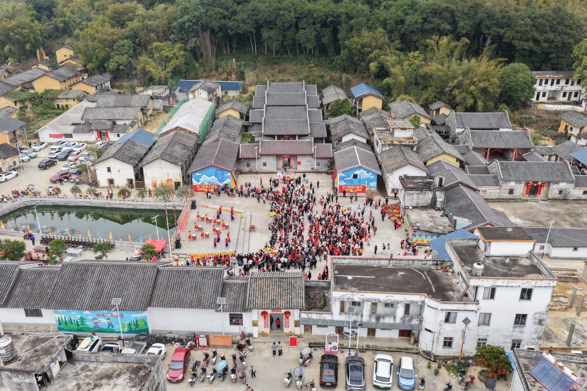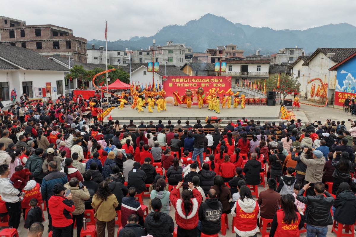 大粽節(jié)在石門古村舉行。鐘健 攝 活動(dòng)以傳統(tǒng)粽子文化為核心載體,依托“粽”與“中”的吉祥諧音,深度融合“逢考必中、生意興隆、幸福滿堂”的美好寓意,致力于打造獨(dú)具石門地域特色的文化節(jié)慶品牌。 當(dāng)天上午9時(shí),鑼鼓聲中醒獅歡騰迎賓,浩浩蕩蕩的巡游隊(duì)伍穿行于這座擁有200多年歷史的中國(guó)傳統(tǒng)村落,熱鬧喜慶的春節(jié)氛圍感拉滿。