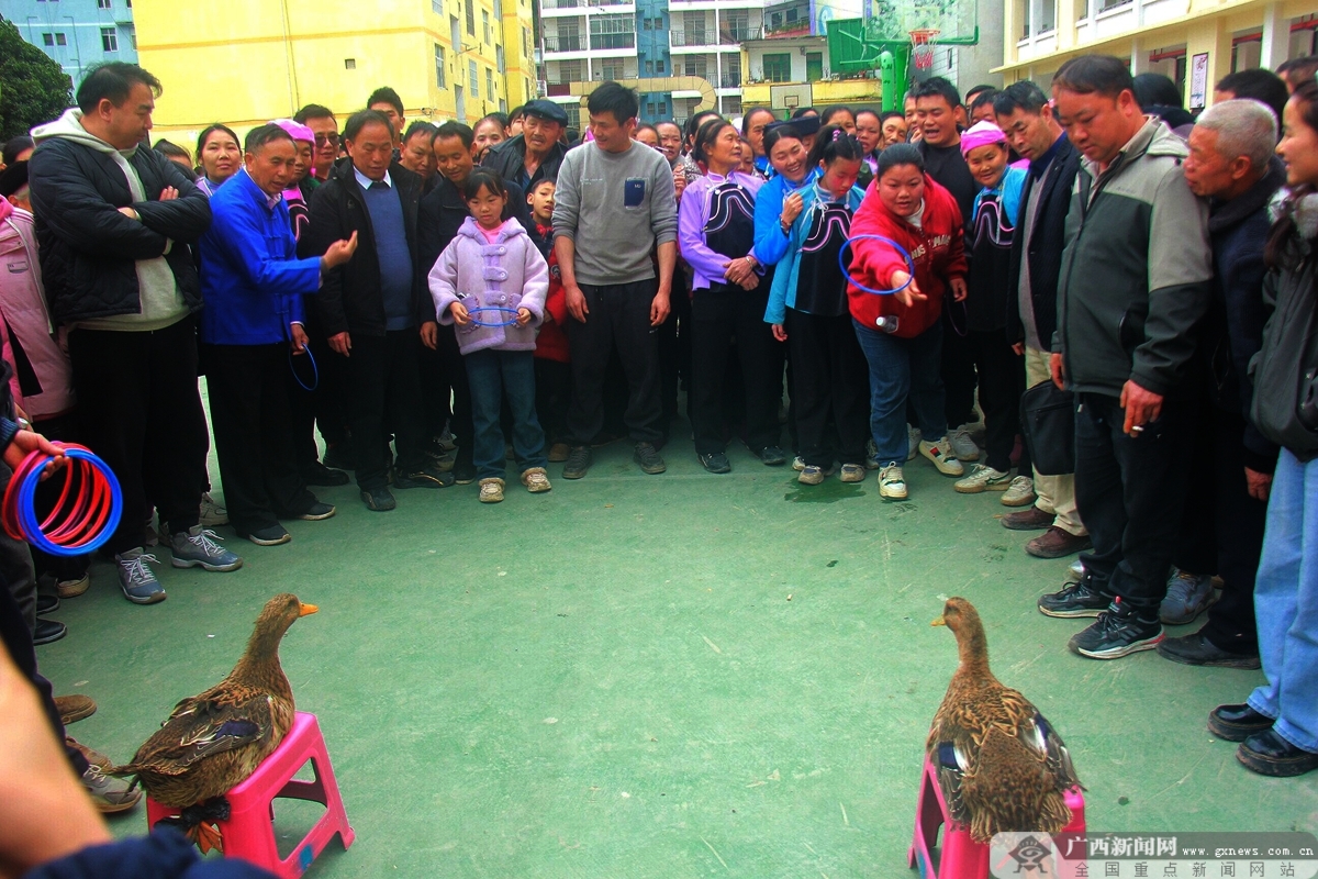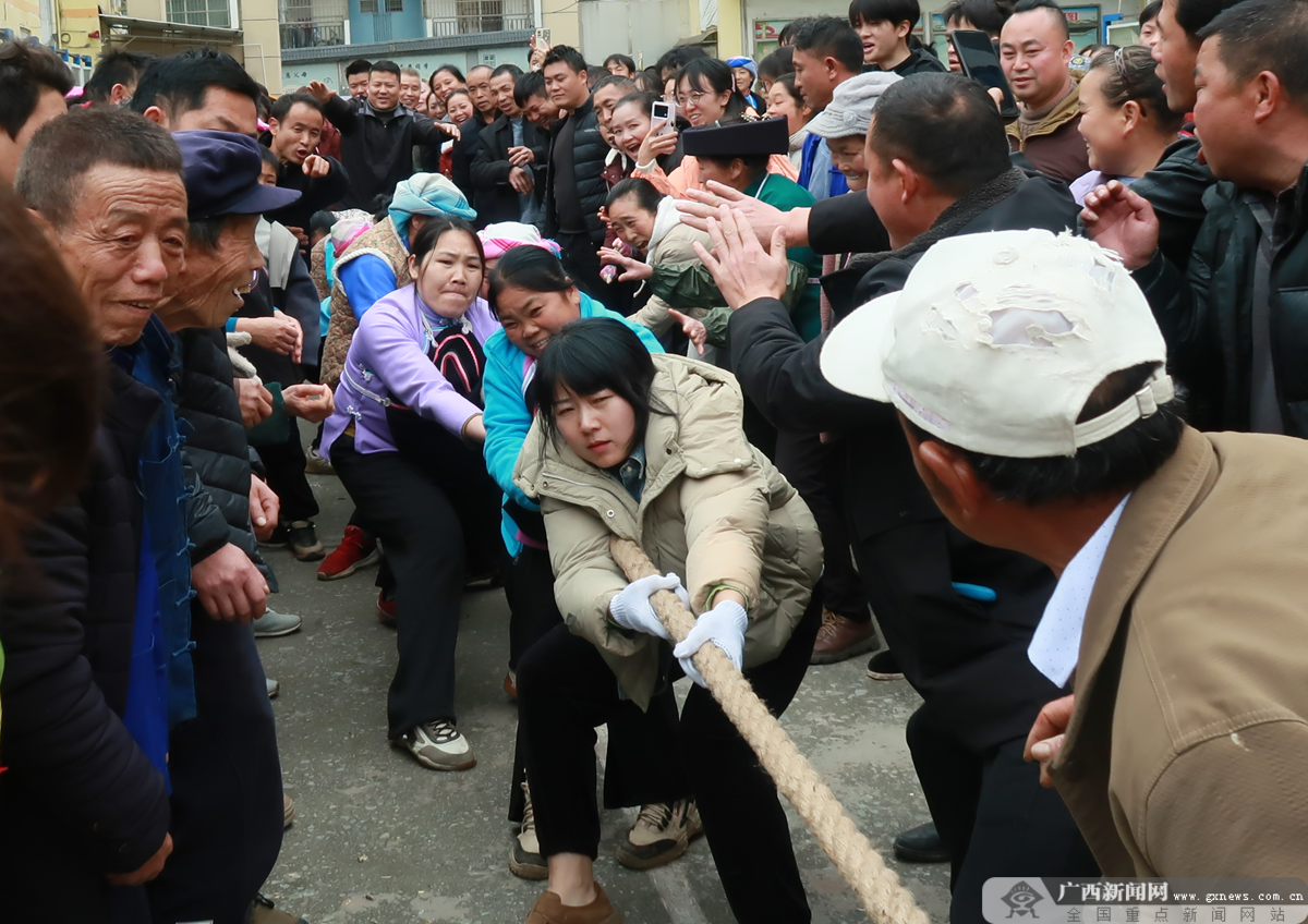 春節(jié)期間,2月17—19日即大年初一至初三,百色市隆林各族自治縣隆或鎮(zhèn)隆或村開展打雞兒棒、拔河、塑料圈套雞鴨、打籃球、文藝演出等充滿鄉(xiāng)土氣息的春節(jié)趣味文體活動。村民們積極參與其中,在這場特別的文體活動中收獲快樂與喜悅,歡歌笑語中凝聚了鄉(xiāng)情,于喜慶祥和的節(jié)日里感受濃濃的年味和溫情的關(guān)懷。