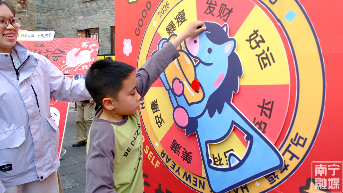 值得一提的是,今年的城隍廟會在守正創(chuàng)新上頗費心思。依托“一鍵游廣西”平臺推出的“城隍納福 旅樂同歡”文旅暢玩套票,將人民劇院及朝陽商圈的文化娛樂業(yè)態(tài)有機串聯(lián),實現(xiàn)“逛廟會、品文化、享休閑”一站式體驗。更令人眼前一亮的是,倉西門、水塔腳等核心區(qū)域設(shè)置了AR互動打卡點,游客掃碼即可觸發(fā)“駿馬拜年”“城門啟泰”等沉浸式數(shù)字畫面。前沿科技與青磚黛瓦的交融,既有儀式感,又有科技范。