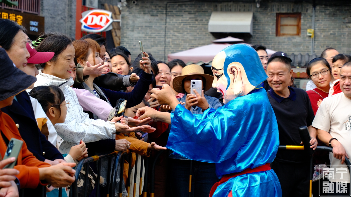 在巡游的熱鬧烘托下,城隍廟門口及中華大戲院前廣場同步開啟“游園會·樂嬉祈馬歲”活動,投壺射藝、馬運轉(zhuǎn)盤、滾滾馬球、蒙眼敲鑼等傳統(tǒng)游戲吸引市民踴躍參與。投壺射藝處,年輕人屏息凝神,一箭中的引來喝彩;“馬運轉(zhuǎn)盤”前,孩童踮腳轉(zhuǎn)盤,盼著指針停在福字之上;“滾滾馬球”游戲區(qū)笑聲不斷,蒙眼敲鑼更是讓圍觀者笑得前仰后合。下午3時、晚上7時許,非遺廟會秀精彩上演,馬山會鼓、廣西山歌、南派相聲、粵劇表演等輪番登場,讓市民沉浸式感受地方文化魅力。