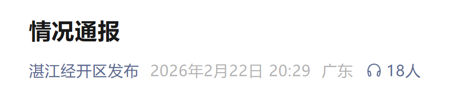 新聞眼2月22日,廣東湛江經(jīng)濟(jì)技術(shù)開發(fā)區(qū)管委會發(fā)布情況通報(bào),全文如下: